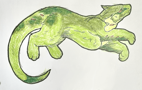 Steeling his resolve, Alcaeus ducked under the waves. His eyes locked onto the circling shark as it returned for another strike. He held his hands in front of him as it darted towards him, jaws wide and ready to claim its meal. Though the water washed away his blood from its teeth, small chunks of his flesh and fur stuck between the rows of teeth. Alcaeus snarled as his determination grew. The creature would not get another taste of him. It surged forward and Alcaeus grasped its head and jaw in his hands, straining with the effort of holding it in place. Realising the danger, the shark began to flail in his arms to tear itself away but it only succeeded in ripping up Alcaeus’ palm as he held it firm. He snarled and pressed down on its jaw, widening it inch by inch until the ligaments snapped. Still refusing to let it go, Alcaeus kicked forward to dig his back claws into its belly. Blood clouded the water, to the point Alcaeus could no longer see, but he did not stop. He kicked until he had no strength left, then he let the body go and broke the surface for air. He didn’t watch to see if the carcass floated with him or sunk into the darkness.